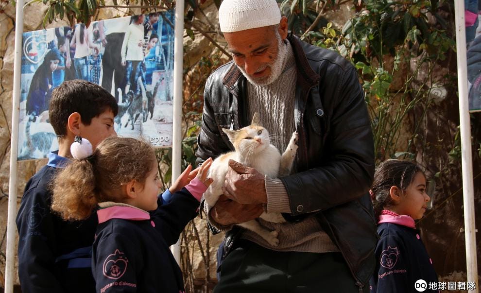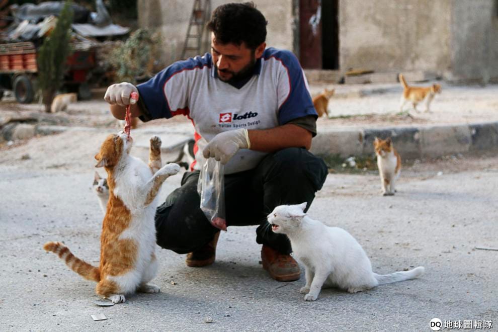 戰爭爆發後,阿力在阿勒坡街頭開始餵貓。