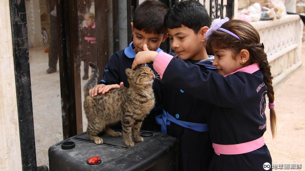 從小就愛貓的阿力相信,孩童能透過照顧動物學會對萬物抱有愛護與同理的心,與動物作伴更能幫助他們從戰火的陰影走出來。他在庇護所中開設動物福祉課程,教導孩童如何與動物相處。