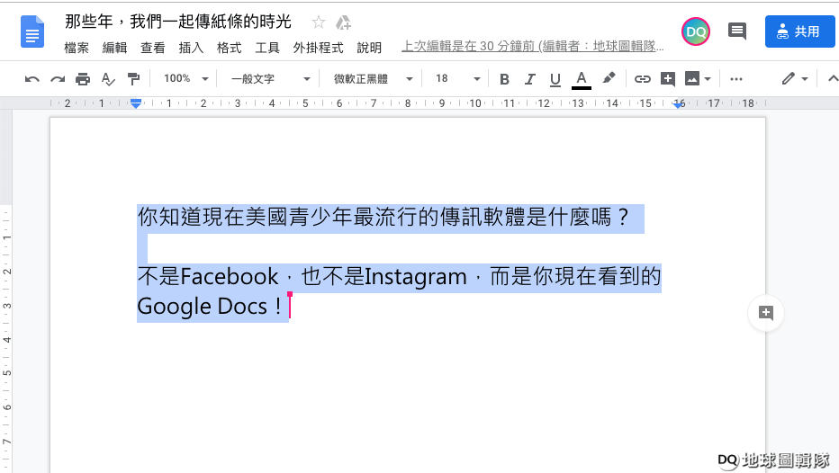 Google Docs不只是好用的線上協作軟體,它也是美國青少年課堂上不可或缺的聊天工具。