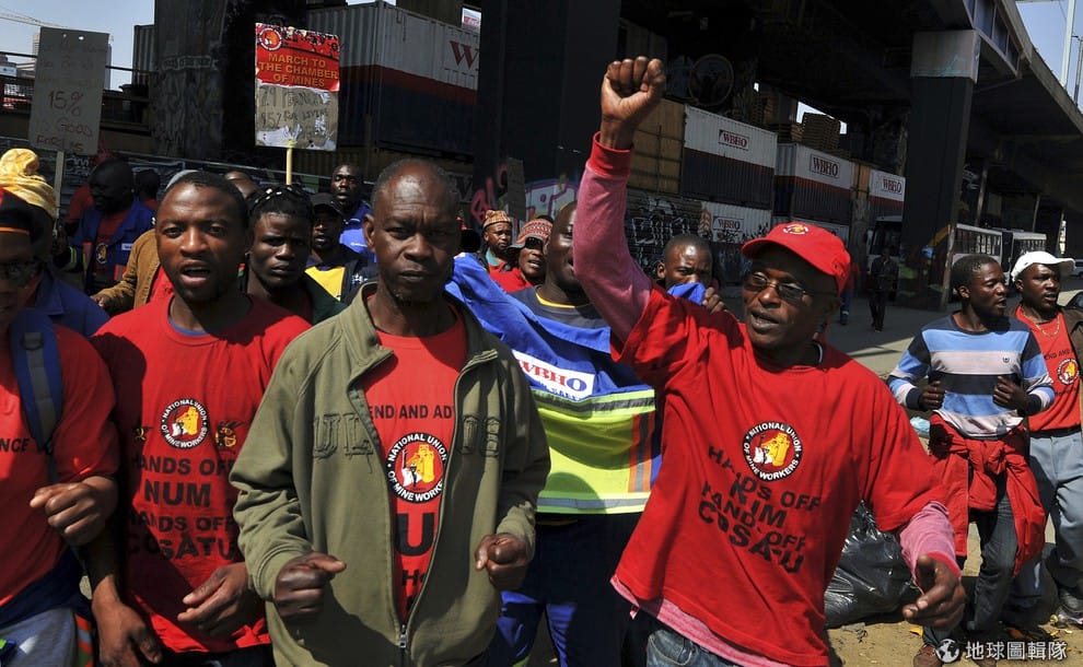 南非全國礦工工會於 8月 27日在南非約翰尼斯堡(Johannesburg)發起罷工。