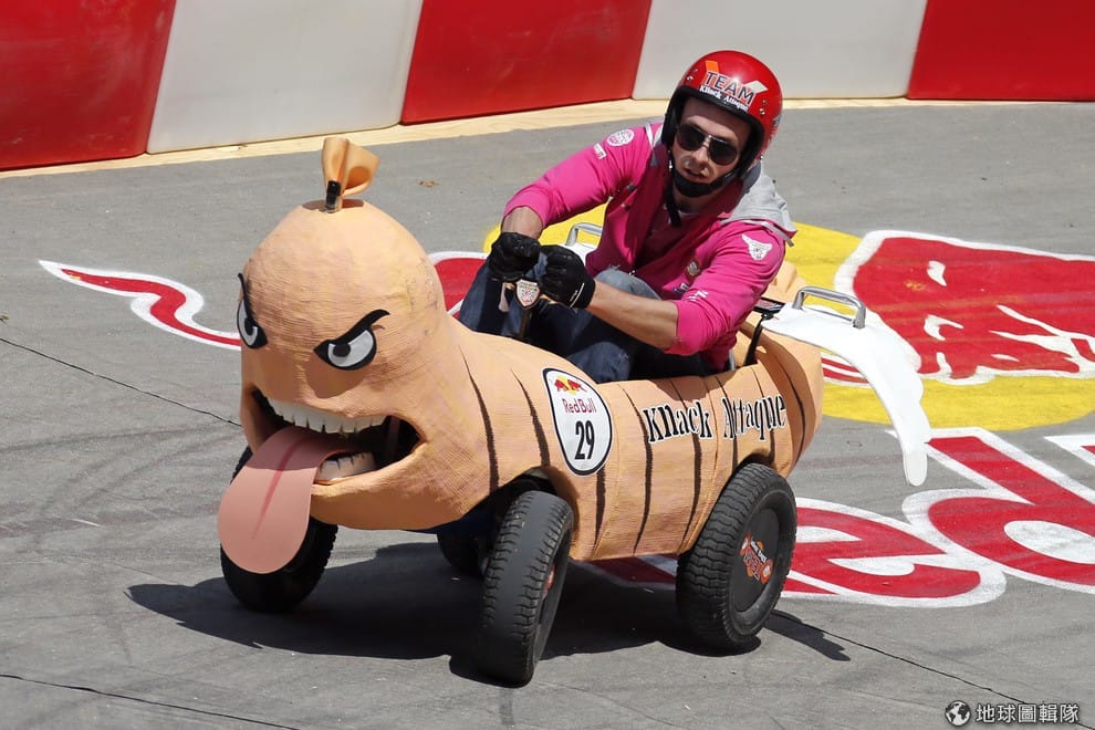 根據台灣活動官網,這次紅牛團隊在台灣經過2個月的徵稿,總計有700件以上的飛車設計稿湧入,在評審的篩選下,共有52組參賽車隊進入決賽,這些車隊有機會讓自己的瘋狂點子在大賽當天盡情綻放。在還沒開賽前,先來看看其他國家的參賽者怎麼狂飆他們的創意吧!