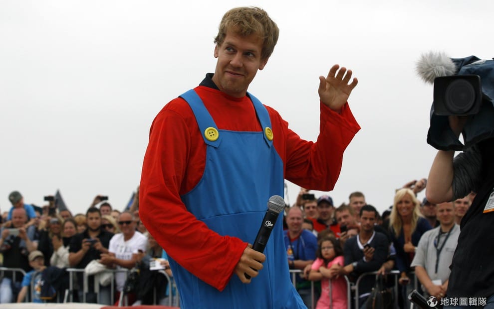 路透社德國,受大家矚目的F1世界冠軍巴斯蒂安·維特爾把自己打扮成馬力歐