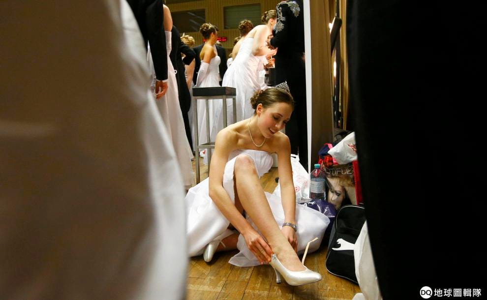在光鮮亮麗的芭蕾舞台背後,是日日夜夜在高壓環境下訓練的辛苦與痛苦。圖為 2015年維也納歌劇舞會開幕表演的彩排畫面。