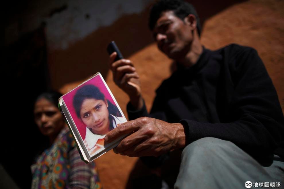 艾克漢地區一名父親手拿女兒的照片。他的女兒在 2014年遵循月經禁忌被隔離在月經小屋時,不幸意外身亡。