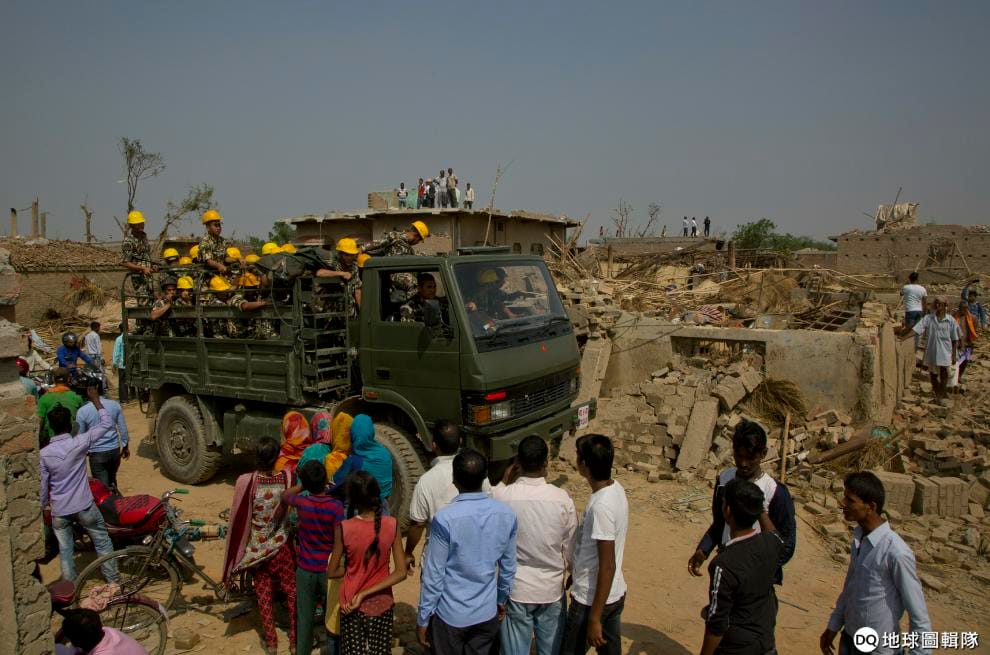 暴風雨過後,尼泊爾軍方成群結隊地前來進行賑災援助。