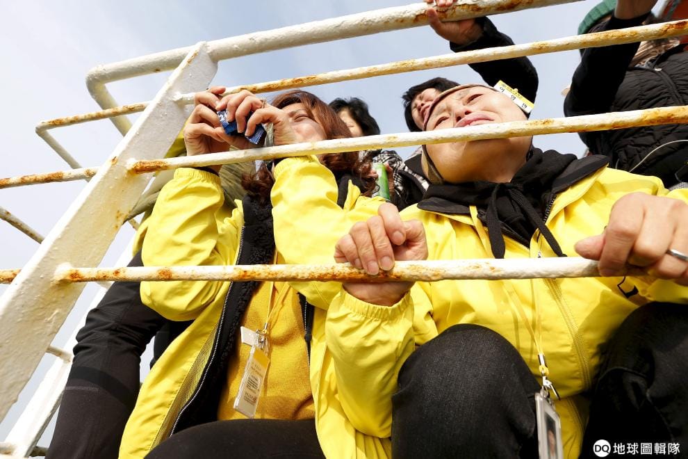 2015年4月15日,來到世越號下沉地點的罹難者家屬痛哭失聲。