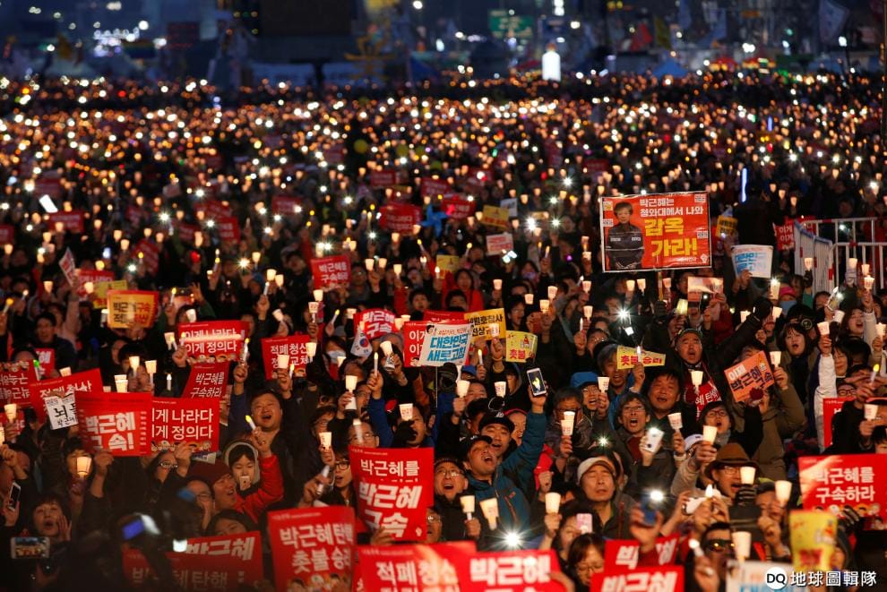 政府在救援世越號上慢半拍,再加上時任總統的朴槿惠爆出貪腐,讓南韓民眾決定走上街頭,要求朴槿惠下台。