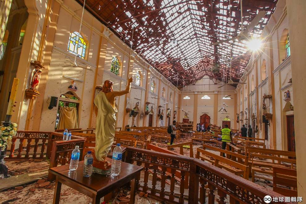 首先,第一起爆炸案發生在當地時間早上大約 8點45分,當時天主教徒們正在首都可倫坡(Colombo)的聖安東尼教堂(St Anthony's Shrine)禮拜,沒想到教堂爆炸,幾乎整個屋頂被炸翻,玻璃碎片、木板等散落一地,地上血跡斑斑。