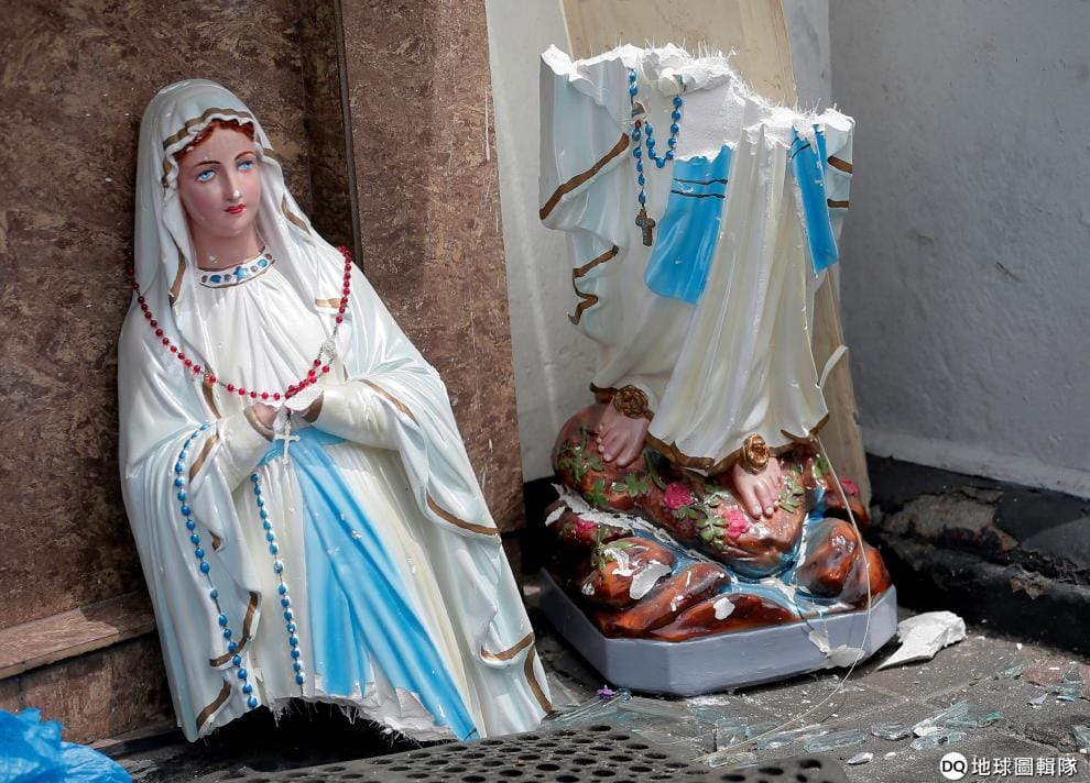網友半島電視台在聖安東尼教堂(St Anthony's Shrine)前,可以看到在爆炸案中斷成兩半的聖母像。
