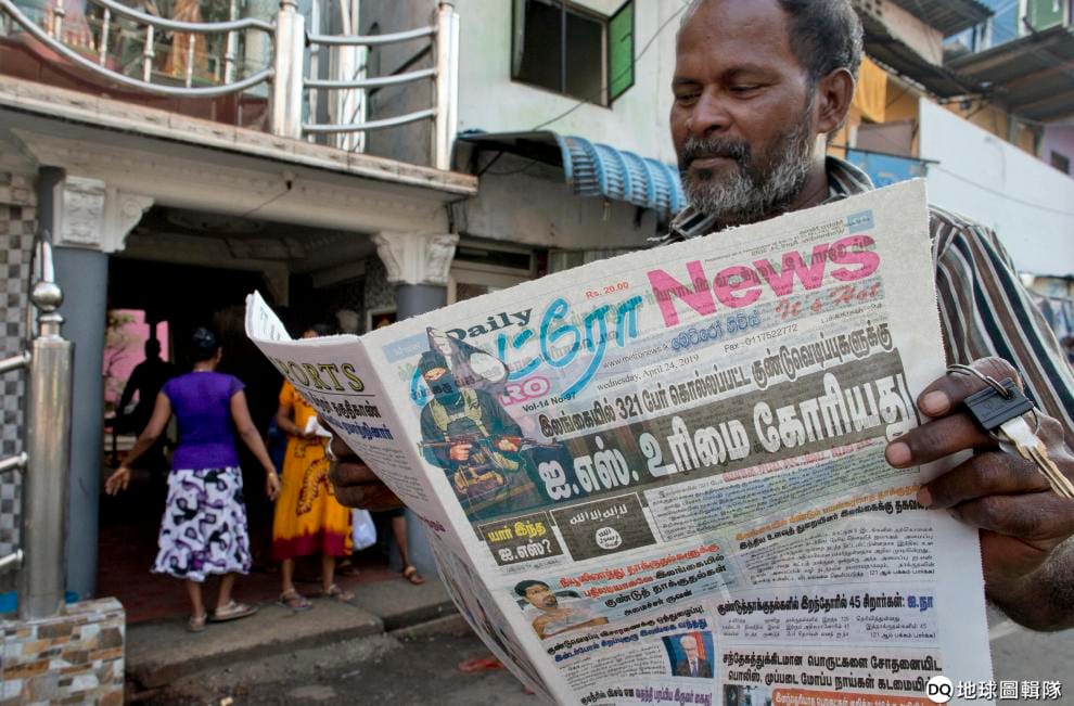 24號這天,一名男子正在看報紙,頭版是恐怖組織伊斯蘭國出面宣稱犯下斯里蘭卡連環爆炸案的新聞。
