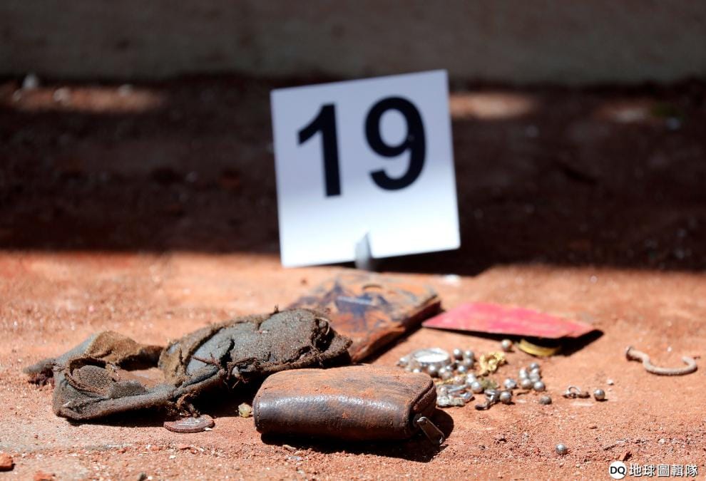 在遭到炸彈攻擊的內貢博(Negombo)聖賽巴斯提安天主教堂(St. Sebastian's Church),可以看到爆炸現場民眾遺留下來的物品。