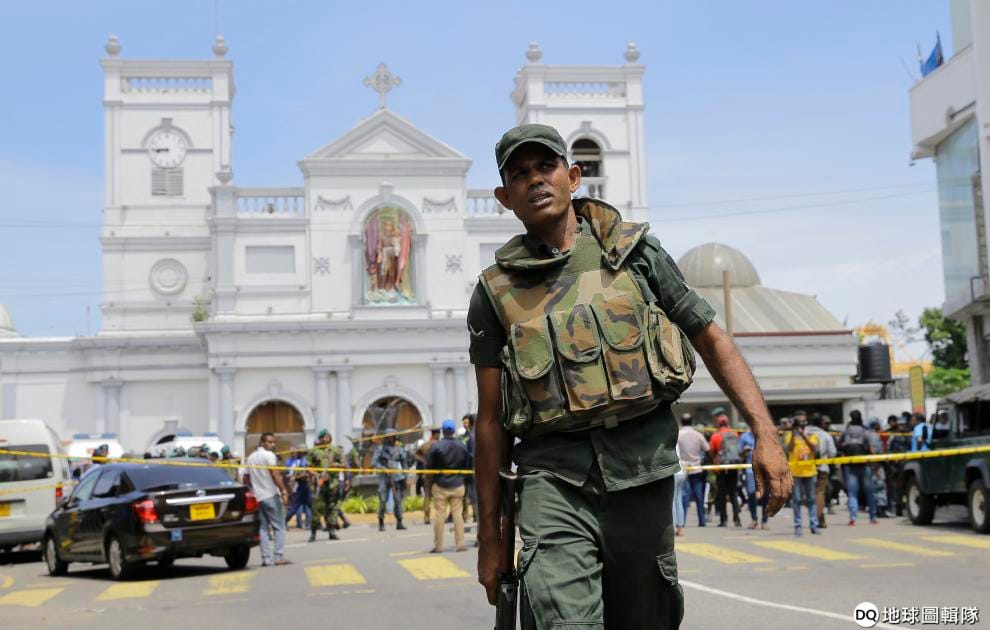 在爆炸案過後,斯里蘭卡總統兼國防部長斯里賽納恢復了軍隊戰時的權力,讓軍人可以逮捕和拘留嫌疑人。圖為在爆炸現場聖安東尼教堂(St Anthony's Shrine)附近維安的軍人。