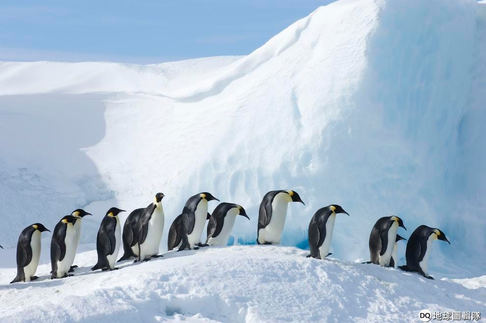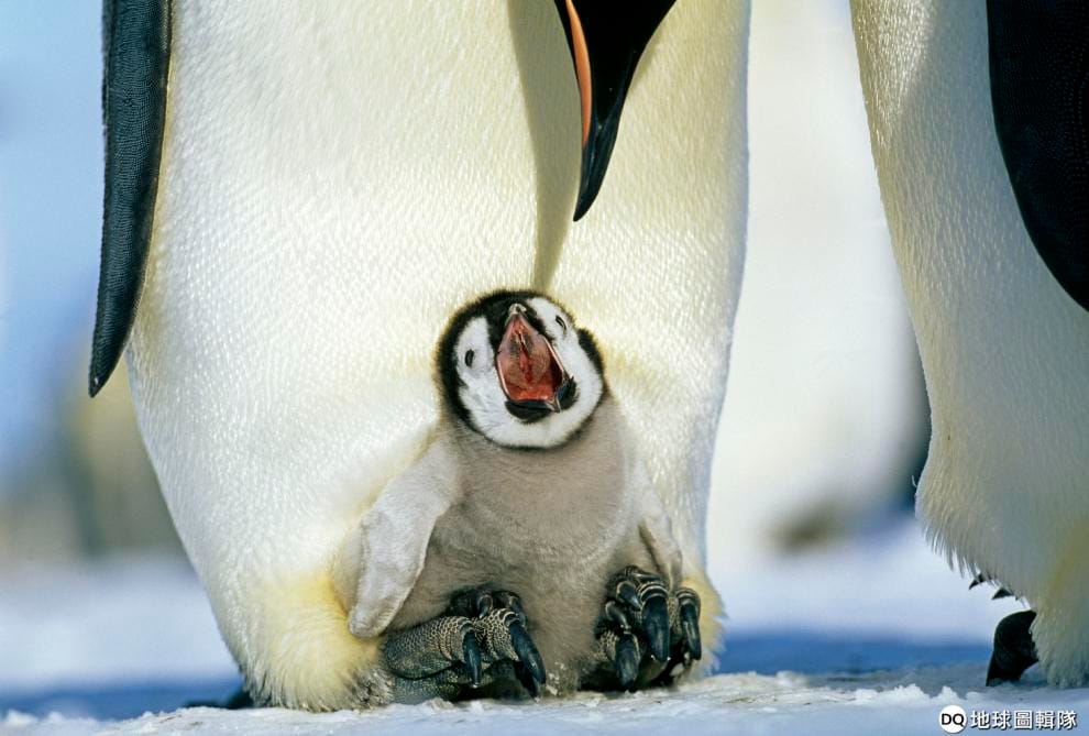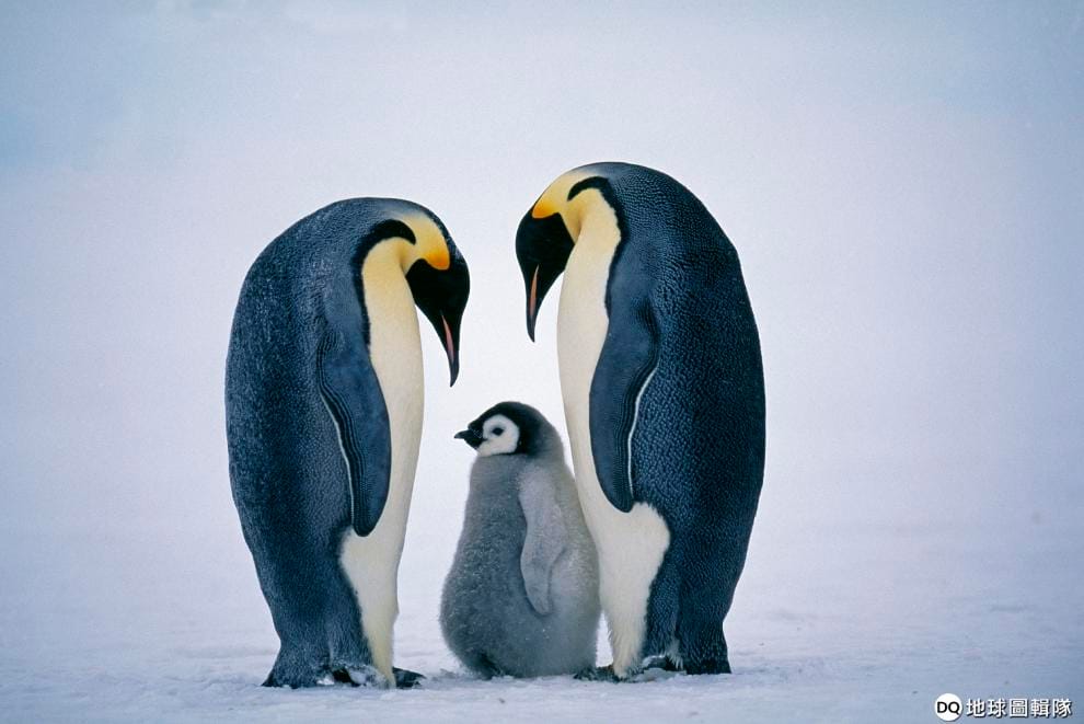 黑白相間、雙耳和胸口有金黃羽毛的皇帝企鵝是世界上體型最大的企鵝,體重最重高達 40公斤,平均壽命 20年。皇帝企鵝每年僅有一個伴侶,相互保持忠誠,在攝氏零下 40度的嚴峻低溫中共同繁殖、養育小企鵝。