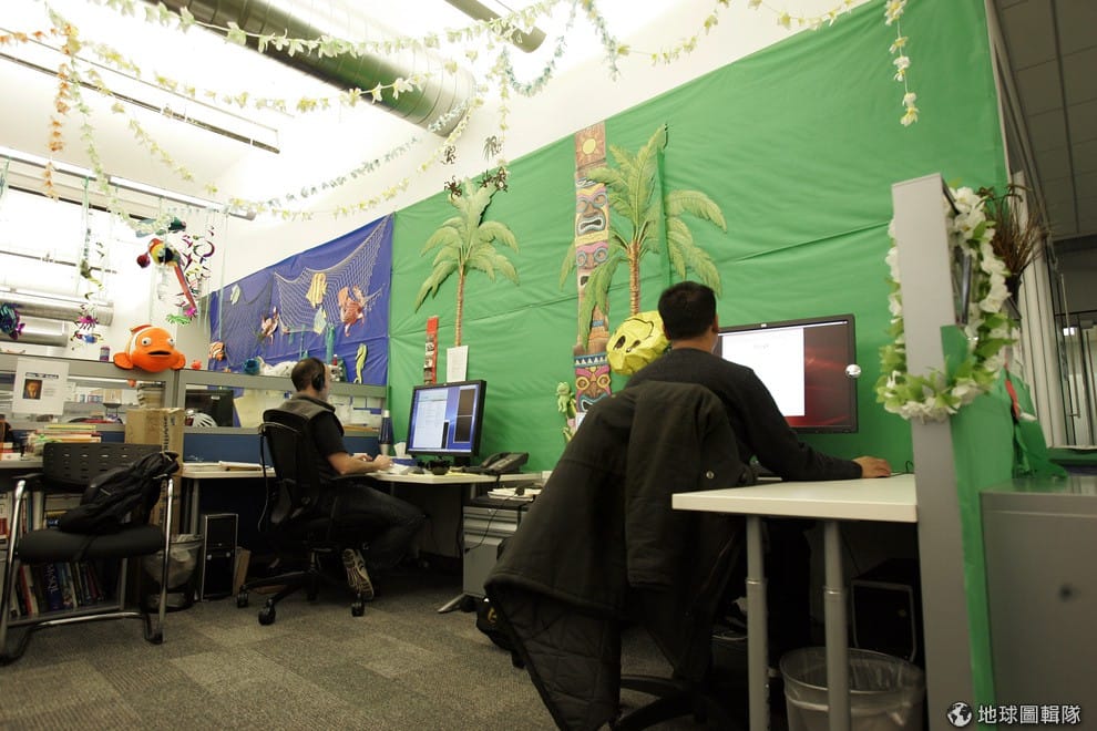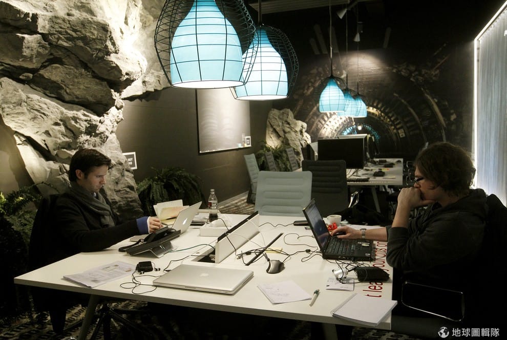 路透社Google總部的一角,員工們正在可以調節溫度、氣密式設計的會議室中開會。