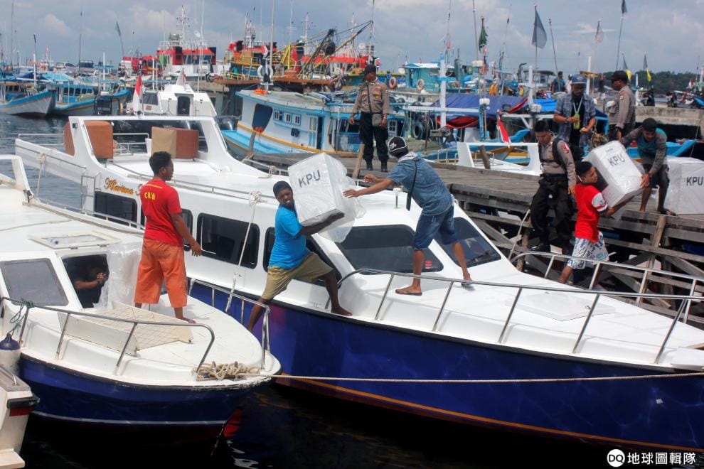 路透社 / 達志影像在大選前,為了確保印尼所有人都能如期投到票,當局也忙著透過海、路、空運的方式把票箱送到印尼各個角落。