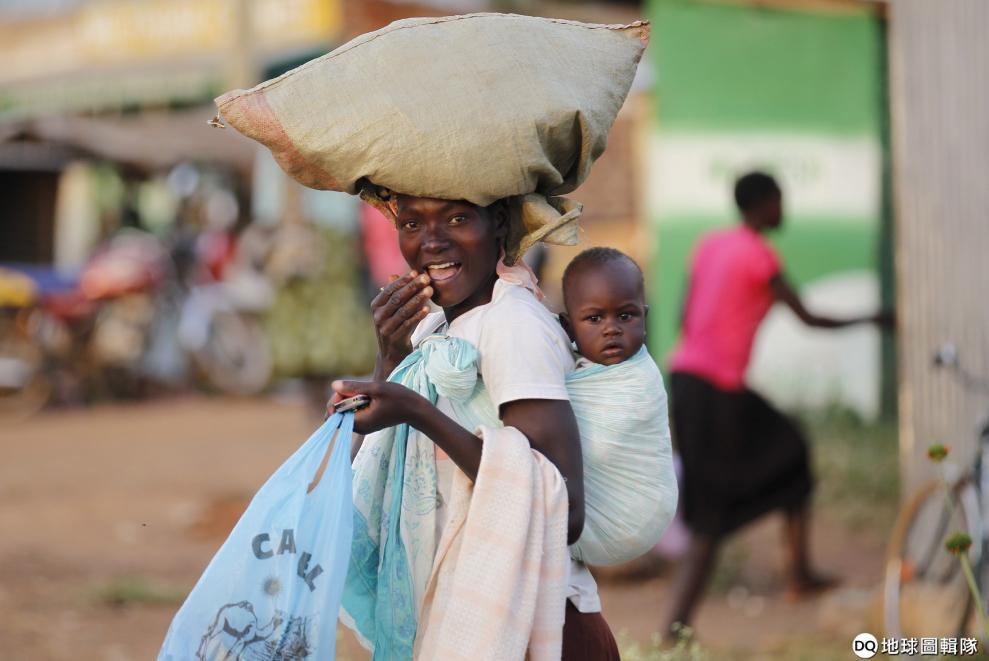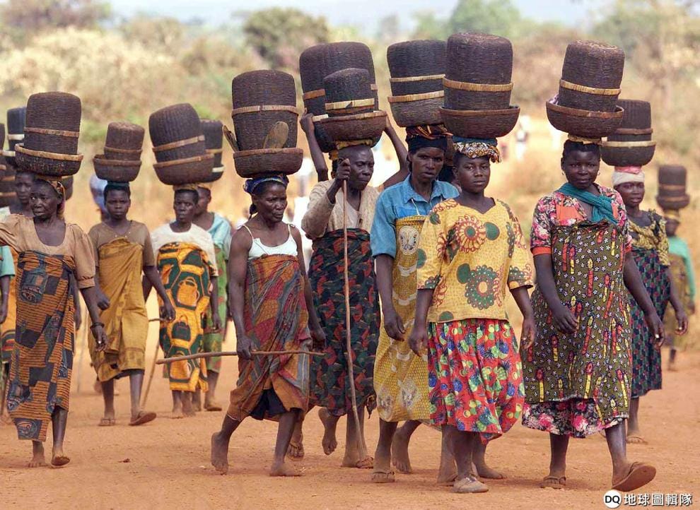 圖為坦尚尼亞北方的女性難民,她們用頭頂著救濟食物,成群結隊地走回臨時庇護營地。