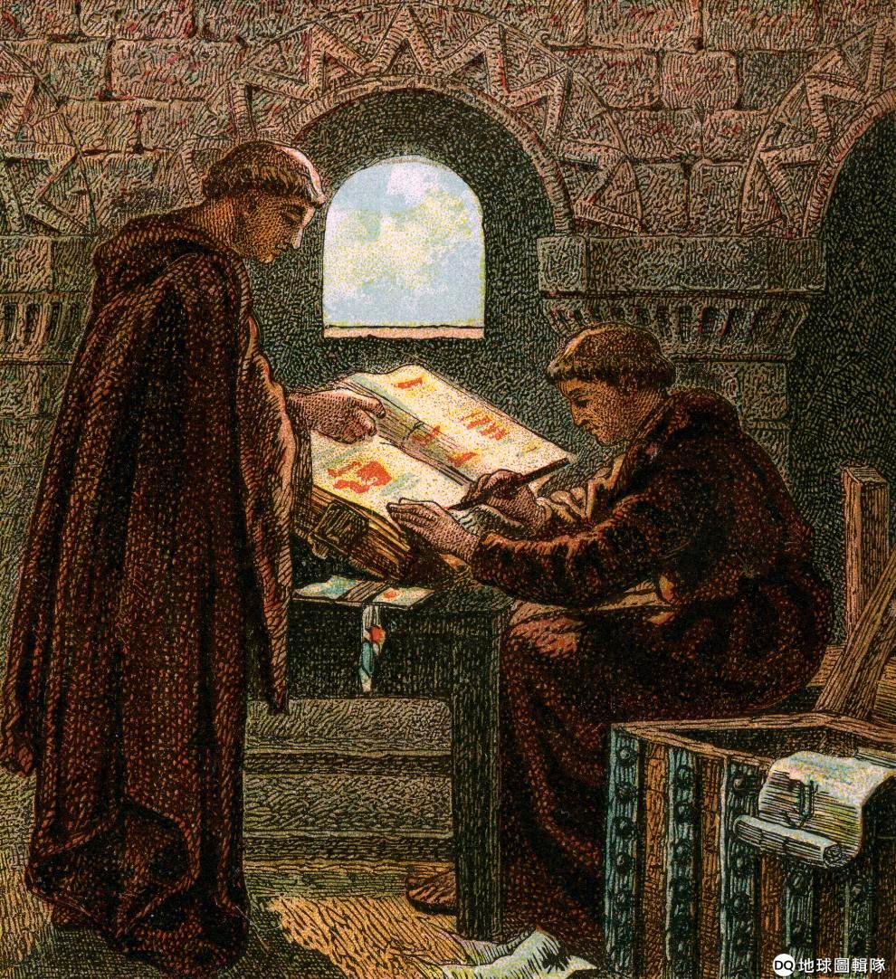 圖為一名在偷喝酒的中古世紀修士。中古修士在侍奉上帝時得保持專心,他們也會擔心自己在讀書、禱告時分心。