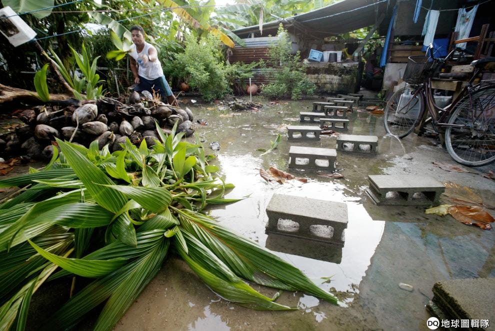 海平面升高後,部分居民的家園因海水灌入而淹水。