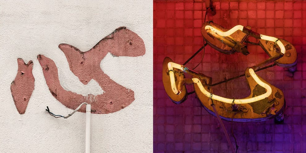 而這些隨處可見的字體,被賈凱拉凱茲給收集了起來。有的店鋪招牌已經斑駁,字體油漆剝落、金屬生鏽、磁磚掉了好幾塊,或是霓虹燈管也碎了,它們的磨損正見證了時間的流逝。賈凱拉凱茲說:「腐蝕的痕跡為字體增添另一層意義,它們不再只是牆上的名字,而變成了時間的詩歌。」