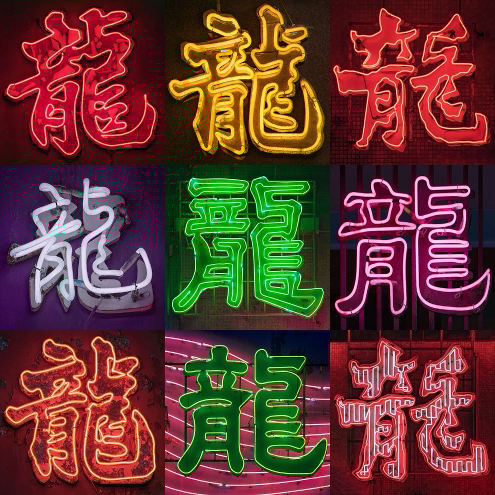 在香港街頭,常常可以看到帶有「龍」這個字的招牌,排列在一塊閃閃爍爍就是一幅絢爛奪目的藝術品。