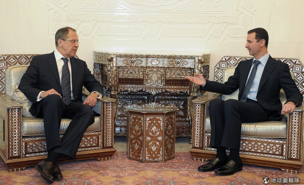 照片中左邊的是俄國外交部長拉夫羅夫,右邊的是敘利亞現任總統阿薩德