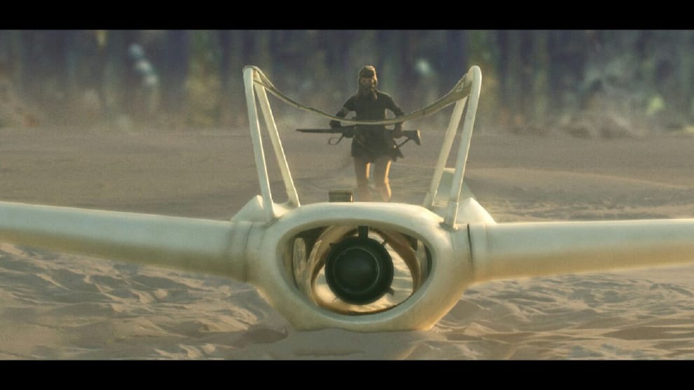 所幸當地居民好心出借吉普車,載著劇組、設備以及主角使用的滑翔翼道具抵達拍攝場景。不料當天起了一場當地前所未見的大型沙塵暴,他們不但無法如期開始拍攝,更必須抵禦沙塵暴的侵襲。