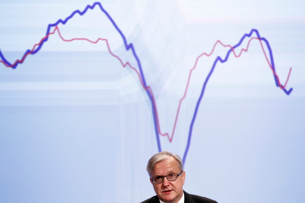 2012年2月,歐洲經濟與金融事務委員會的成員正在進行記者會。
