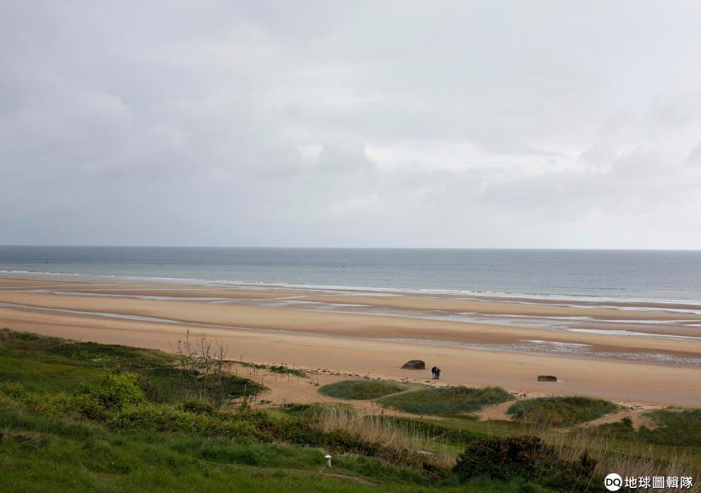 圖為有「血腥奧馬哈」之稱的奧馬哈海灘,當時盟軍搶灘時在這裡與納粹德國軍隊激戰,造成 2,500人死亡。現在,這裡一片平靜,偶有觀光客來此散步。