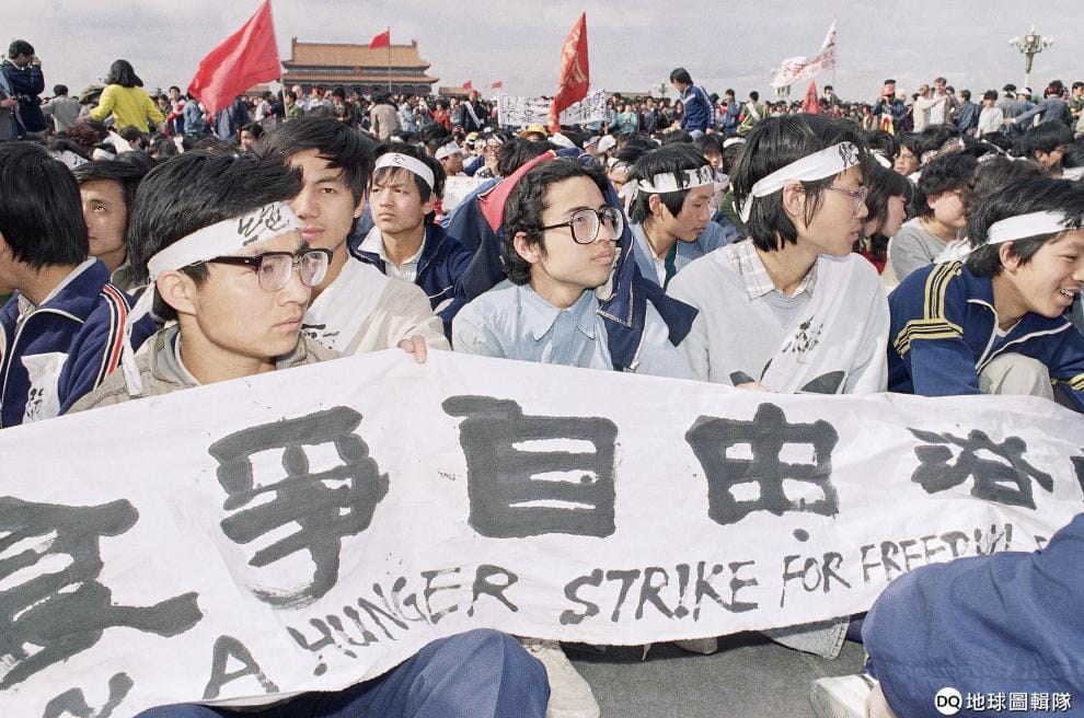 5月13日,數百名大學生聚集在天安門廣場舉行無限期絕食,對政府拒絕溝通的態度表達抗議。當時在現場可以看到許多爭取民主、自由、呼籲政府改變的標語。