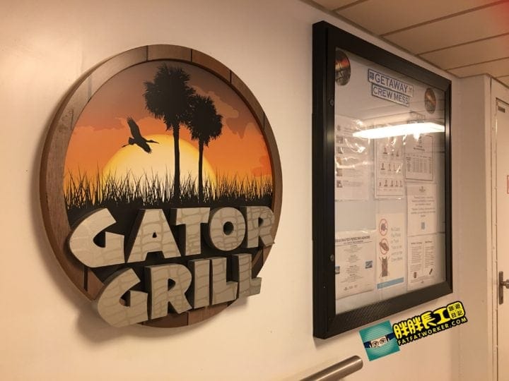 上面這個是員工餐廳的LOGO,內部不能拍照,因為跟乘客餐廳的氣氛完全不一樣啊!按照隨團領隊的說法「我根本不想待在這吃飯」。因為郵輪的工作人員有分級別的,較高階層的郵輪工作人員,可以到乘客使用的頂層甲板自助餐或Deck6的晚餐主餐廳用餐,一般的工作人員,只能在這個員工餐廳吃飯。