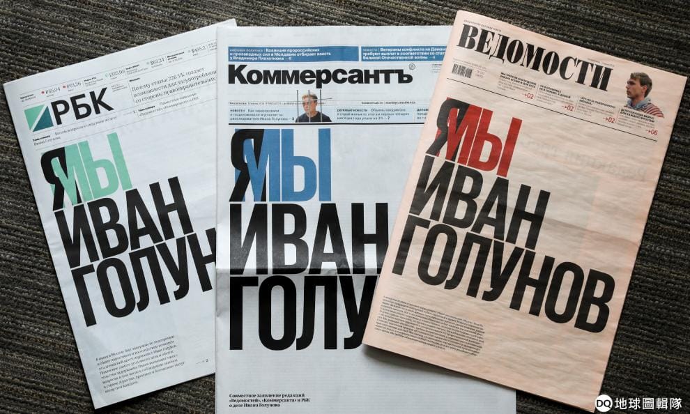 本周一,俄國三大報社刊登了一模一樣的頭版內容,以「我(們)都是戈盧諾夫」的標語聯合聲援戈盧諾夫的清白。