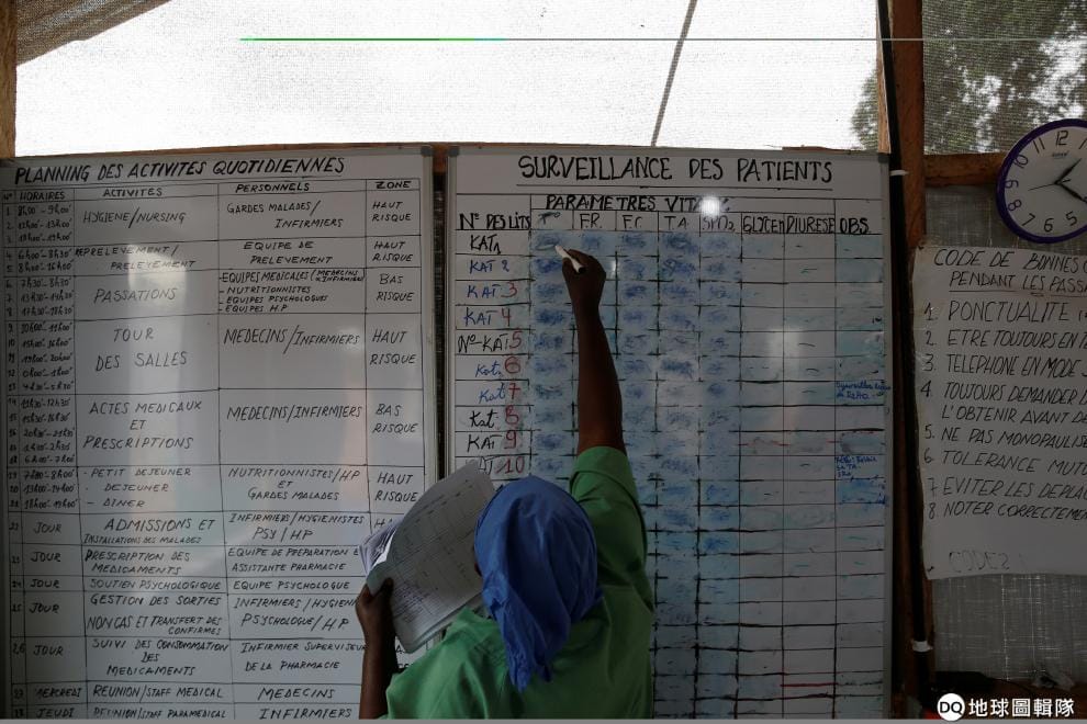 在民主剛果的治療中心裡,一名醫療人員忙著更新病患資訊。