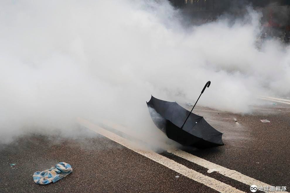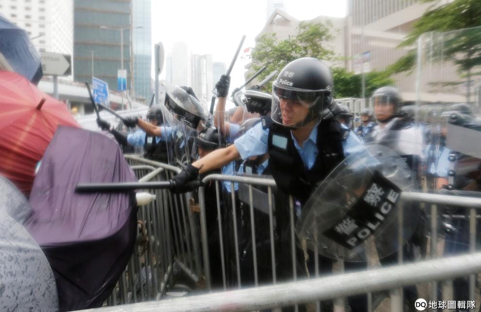 路透社 / 達志影像許多人會用雨傘遮擋胡椒噴霧、水柱、警棍攻擊。