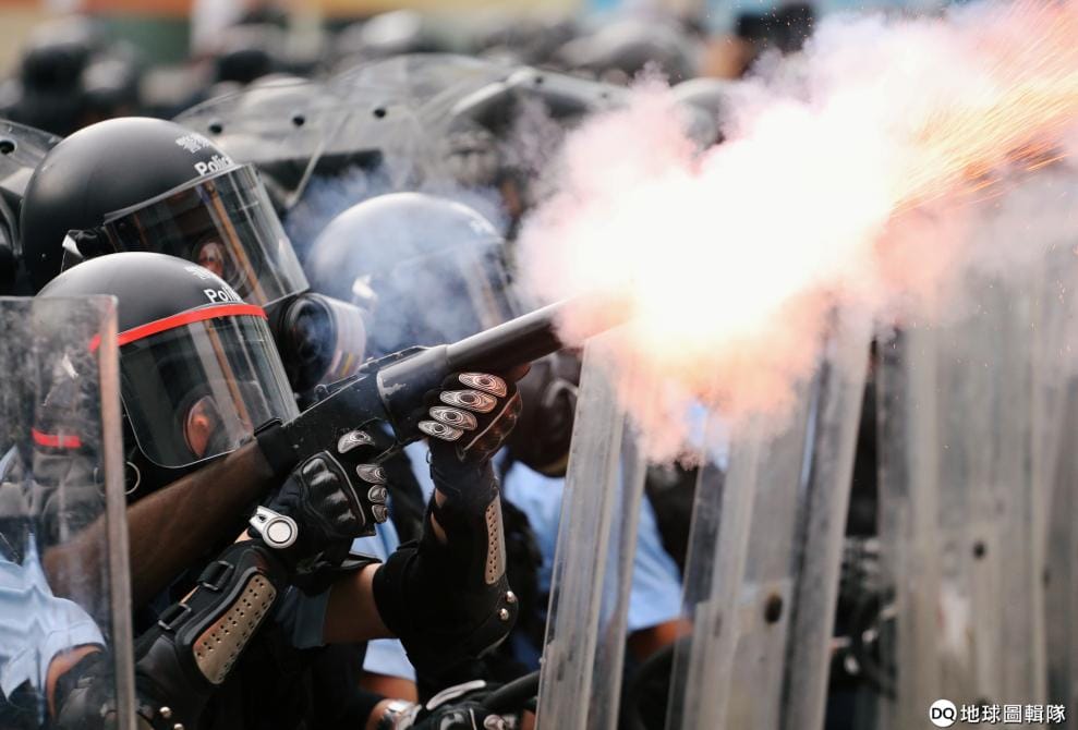 路透社 / 達志影像在抗議過程中,警方數次張起了「黑旗」,代表他們要仍擲催淚瓦斯。