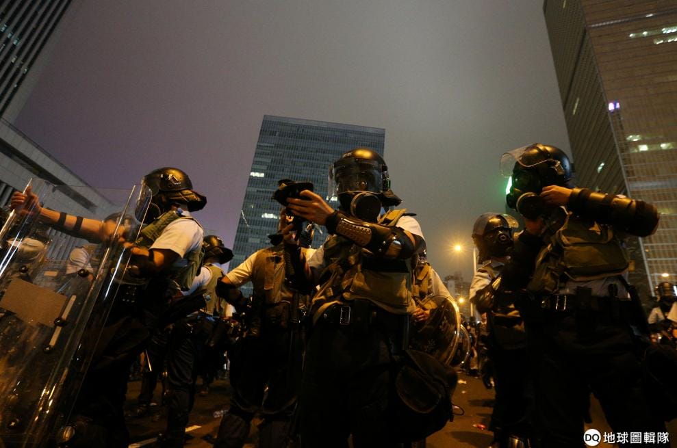 路透社 / 達志影像大約晚上八點左右,鎮暴警察開始穿戴重裝。
