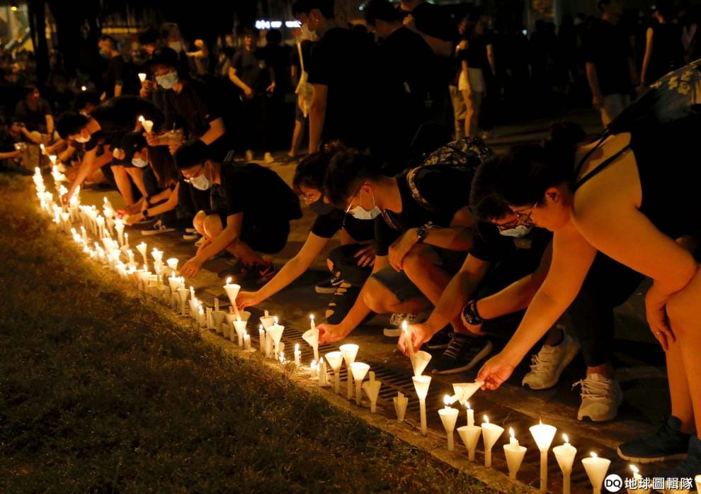 就算到了晚上,示威人潮也一樣沒有散去。