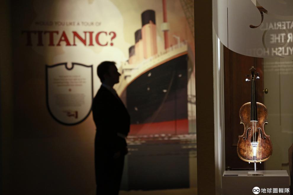 圖為鐵達尼號樂團樂手哈特利在船沉時拉奏的小提琴,這把琴當時被綁在哈特利的身上,船沉後十天被另一艘船給打撈了起來。
