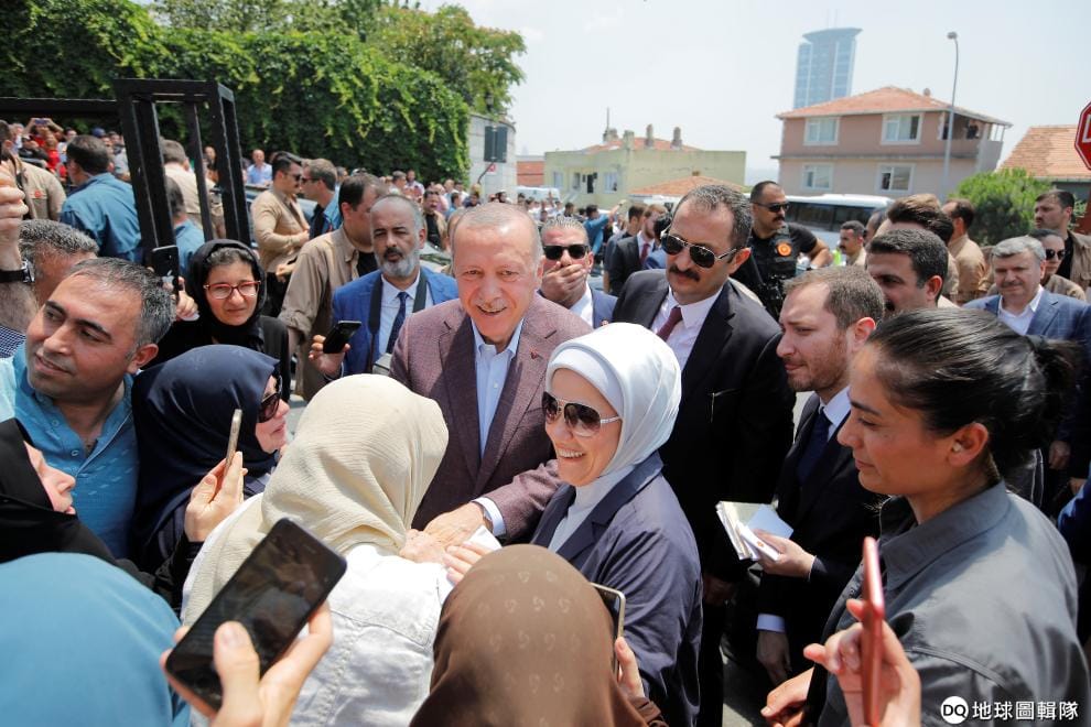 圖為 23號,和妻子一起前往投票所的埃爾多安和支持者打招呼。埃爾多安本身是土身土長的伊斯坦堡人。