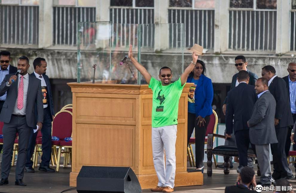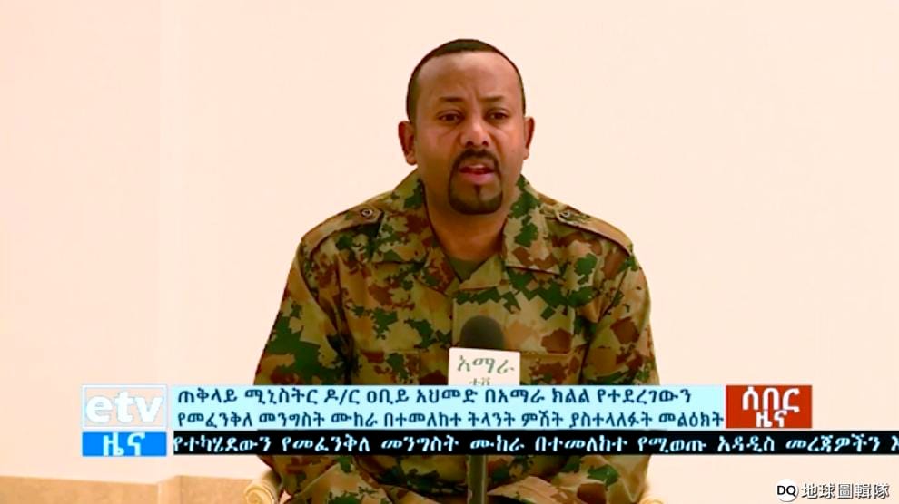 上周六,在政變發生當下,身穿軍服的總理阿比神情嚴肅的發表演說。