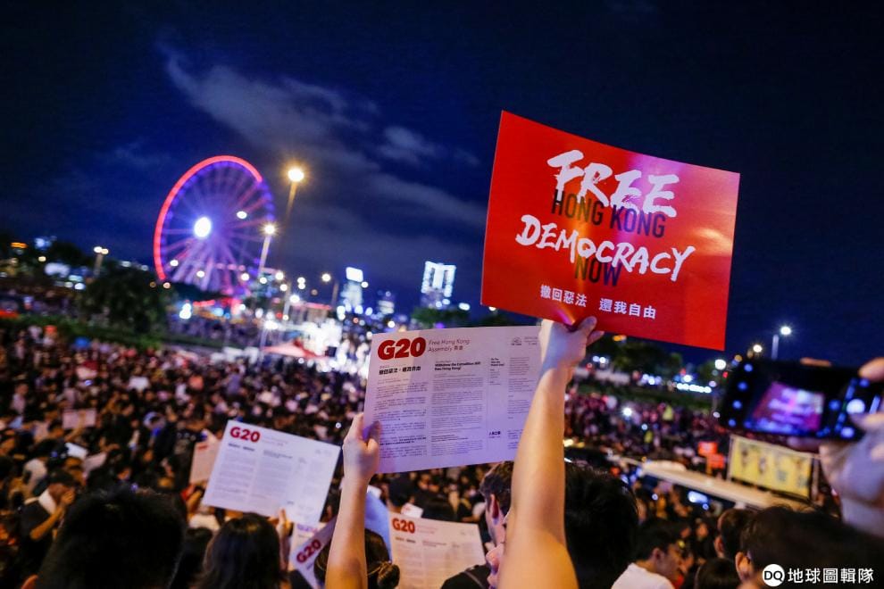 在G20領導人高峰會即將召開的前夕,反對《送中條例》的民眾齊聚一堂,舉起亮著燈光的手機抗議,在要求當局撤回該法案的同時,他們也希望能爭取到外國勢力的關注。