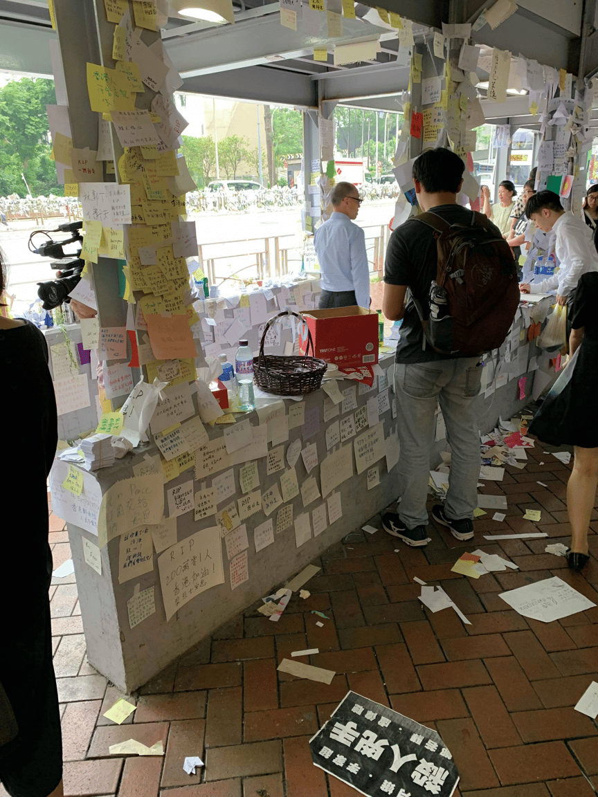 台灣人的身分在當下是有優勢的。在我們訪調的過程中,或許是因為我們主動表明台灣人的身分,大多數的香港人都願意和我們討論對運動的想法。有趣的是,同行的夥伴中有影像紀錄者,因此會詢問受訪者能不能紀錄影像;雖然人們大多願意接受錄影,但不少人擔心政府事後會對他們進行政治或司法追訴,所以都會要求不要拍到臉。
