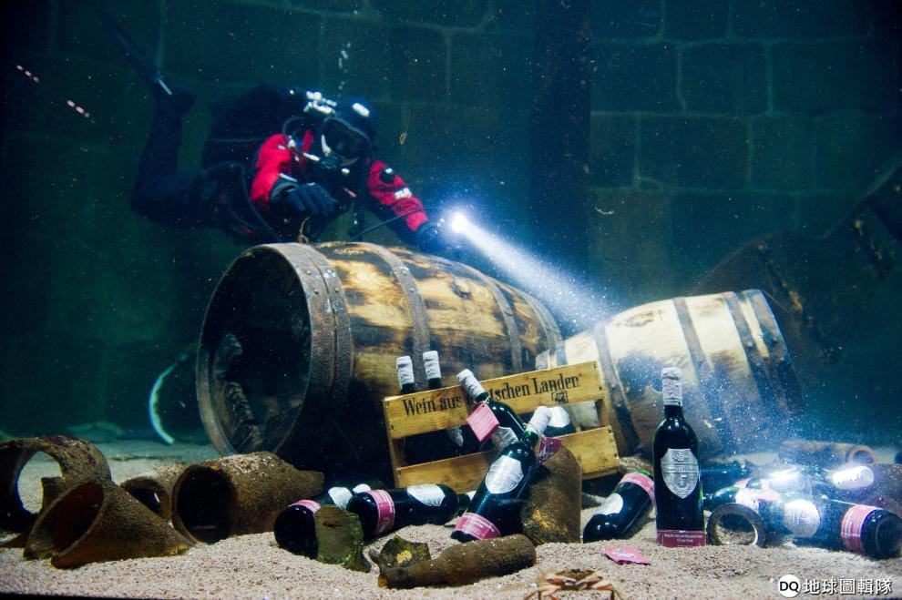 海底酒窖的概念源自於沉船寶藏,探勘百年沉船尋找寶藏一直是潛水員之間的熱門活動。圖為 2014年,潛水員探勘一艘在 1941年沉於蘇丹外海的沉船殘骸。