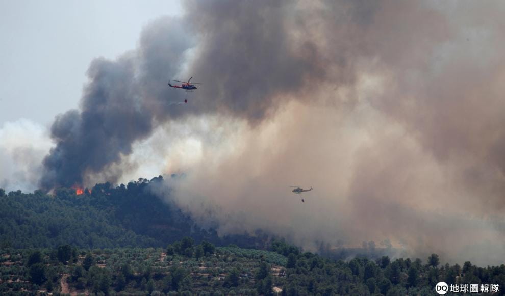 在西班牙,熱浪的出現造成了森林大火,上百名消防人員和軍人在消防飛機一邊灑水下一邊滅火,想辦法讓位於加泰隆尼亞東北部的拉托雷德萊斯帕尼奧爾(Torre del Espanol)森林盡快恢復平靜。