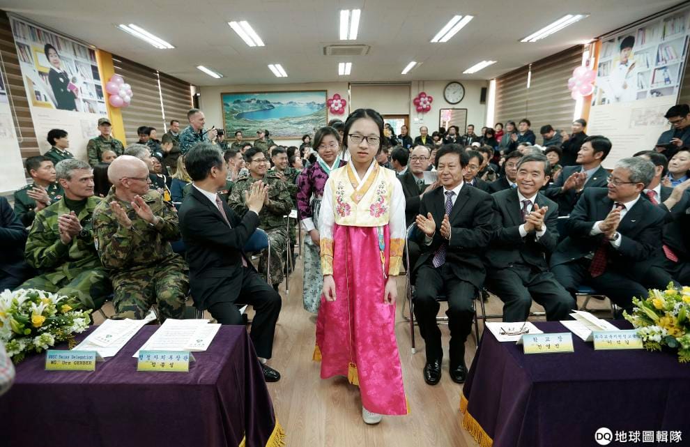 圖為 2016年,南北韓非軍事區唯一的學校臺城洞小學的畢業典禮。這所學校距離南北韓軍事國界只有數百公尺,全校建築都做了防範流彈攻擊的措施。
