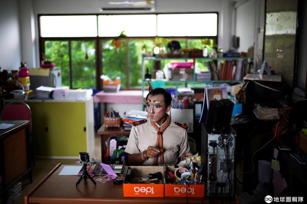 每到學校,就能看到米沙特在辦公室仔細地梳妝打扮,在《路透社》記者來訪的這一天,米沙特正在把自己打扮成韓團BLACKPINK的成員Lisa,只見他畫上充滿戲劇風格的眉毛、嘴唇等等,再戴上超長眼睫毛跟銀色假髮後,就會以走台步的姿態走進教室上課。