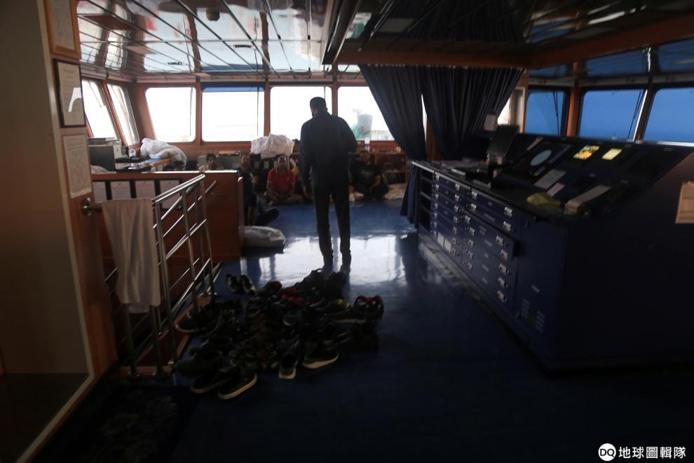 一名船員走在「斯坦納帝國號」內。這艘船的船員來自印度、俄國、拉脫維亞、菲律賓等國。