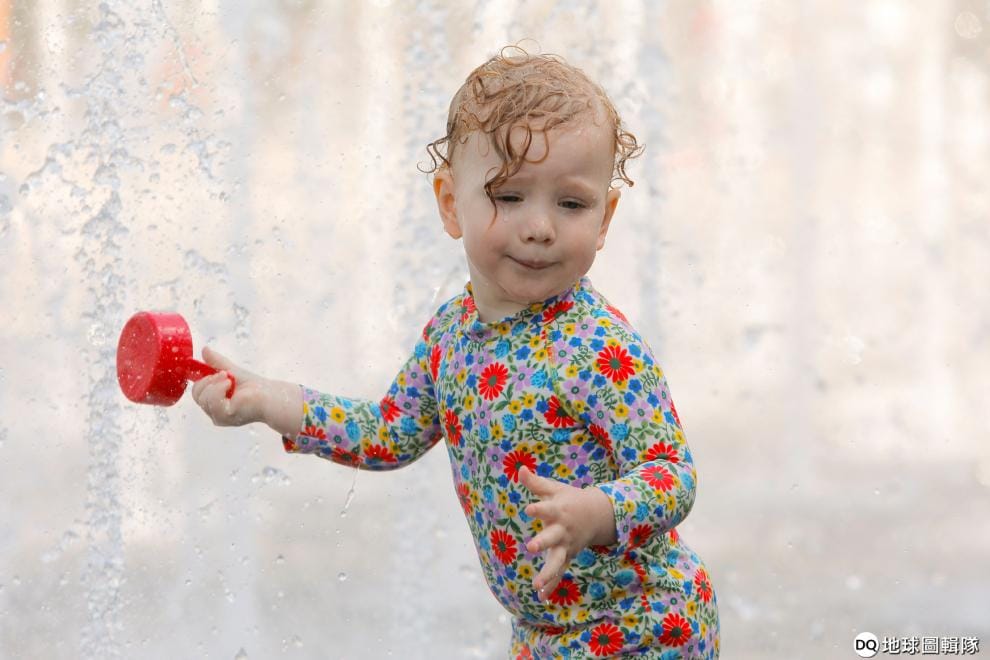高溫襲來,民眾紛紛到城市中的噴水池或噴水景觀區戲水消暑。