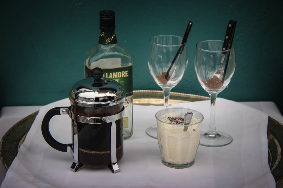 第一步,先將黑糖放進馬克杯或耐熱的玻璃杯,隨後加入熱咖啡攪拌均勻,再加入愛爾蘭威士忌攪拌。最後,沿著湯匙的背面緩緩地把打發鮮奶油加在咖啡上就大功告成了。