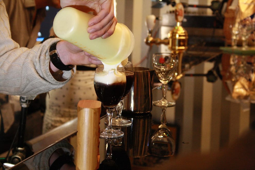 調製愛爾蘭咖啡的最後一個步驟,就是將輕盈的打發鮮奶油加在加了愛爾蘭威士忌的咖啡上。