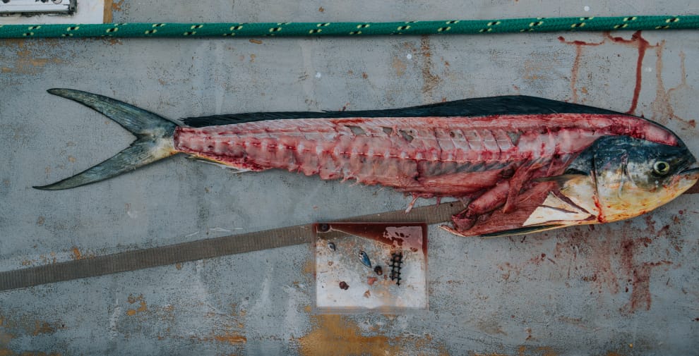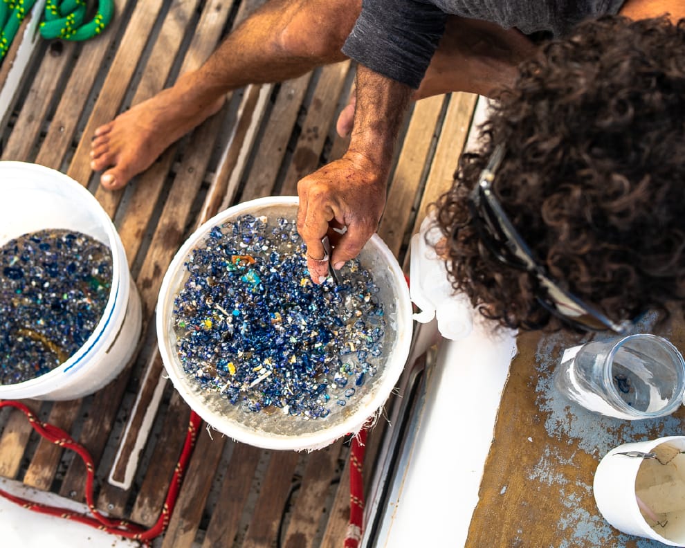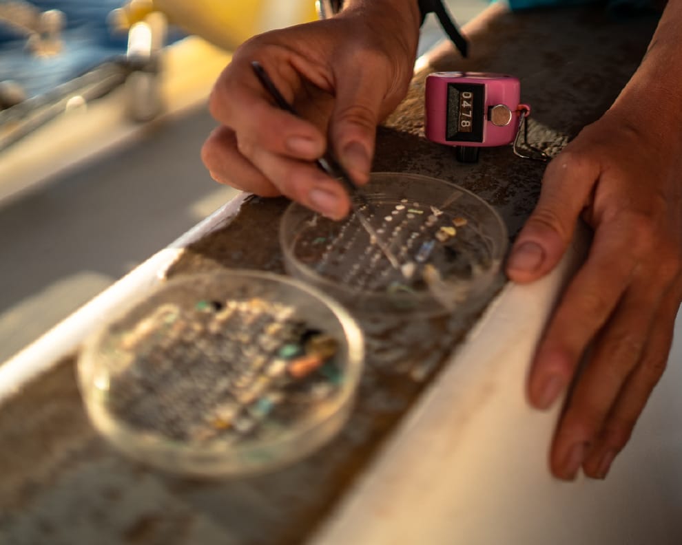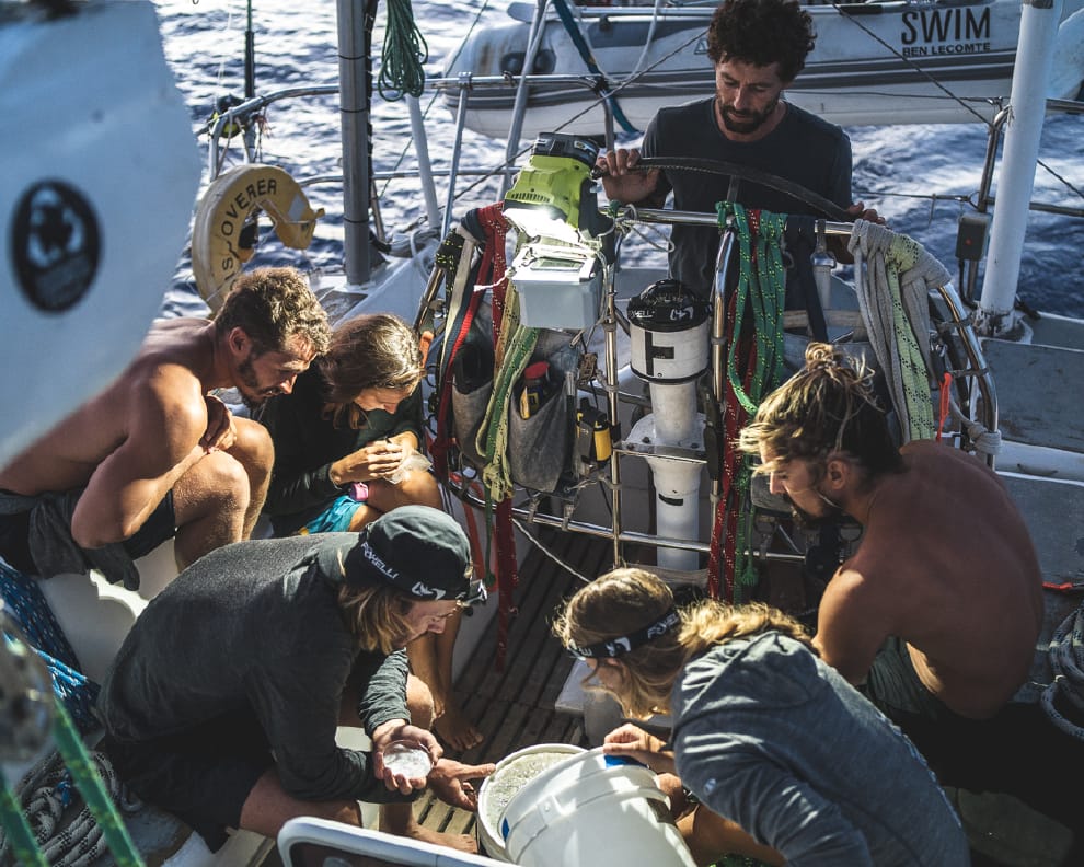 6月14日從夏威夷出發後,勒孔特和他的團隊已經在海裡找到了各式各樣的塑膠垃圾,從便當盒、兒童玩具到漁網應有盡有。隨團科學家麥克惠特(Drew McWhirter)甚至在他們的晚餐裡發現微塑膠的蹤影——在切開新鮮捕獲的鯕鰍(Mahi-Mahi)後,麥克惠特在牠的肚子裡看到塑膠碎片。